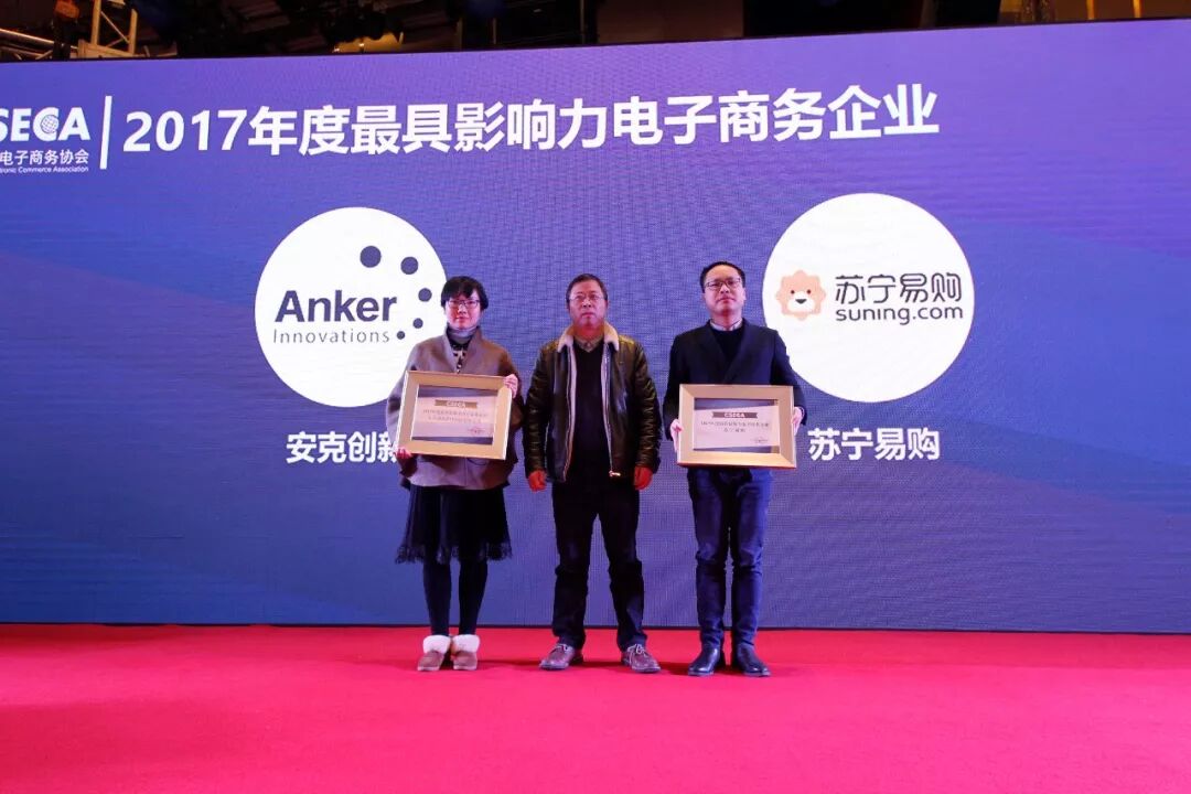 祝贺安克创新、苏宁易购荣获2017年度最具影响力电子商务企业。