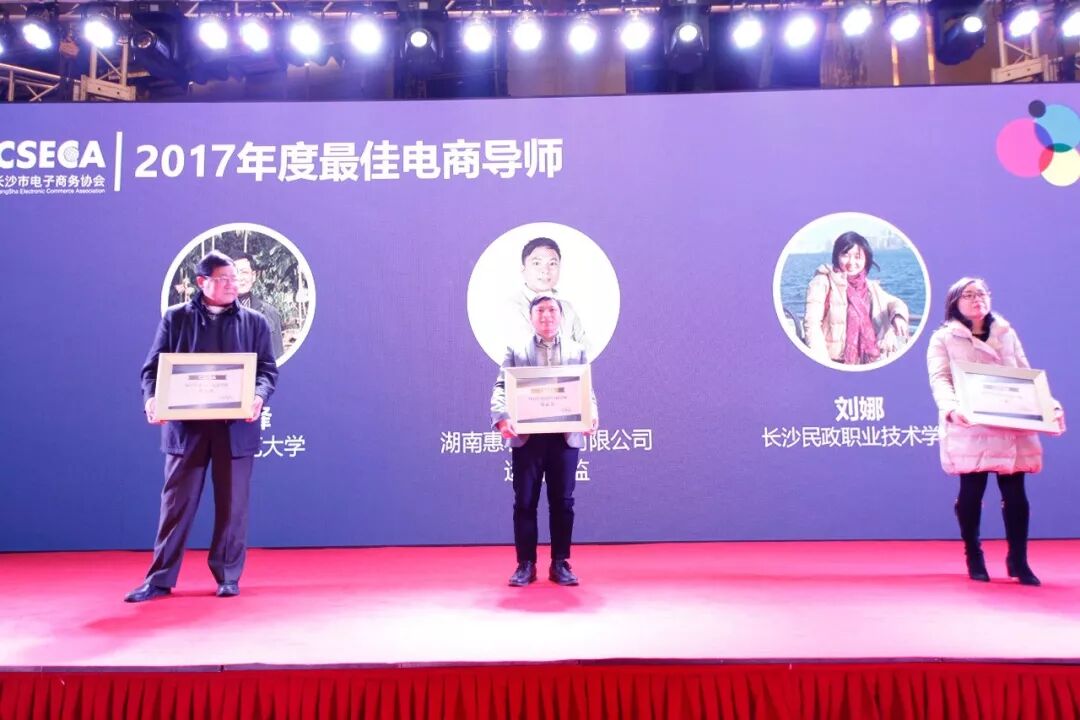 祝贺湖南师范大学刘先锋、湖南惠农科技有限公司运营总监邓武杰、长沙民政职业技术学院刘娜荣获2017年度最佳电商导师奖。