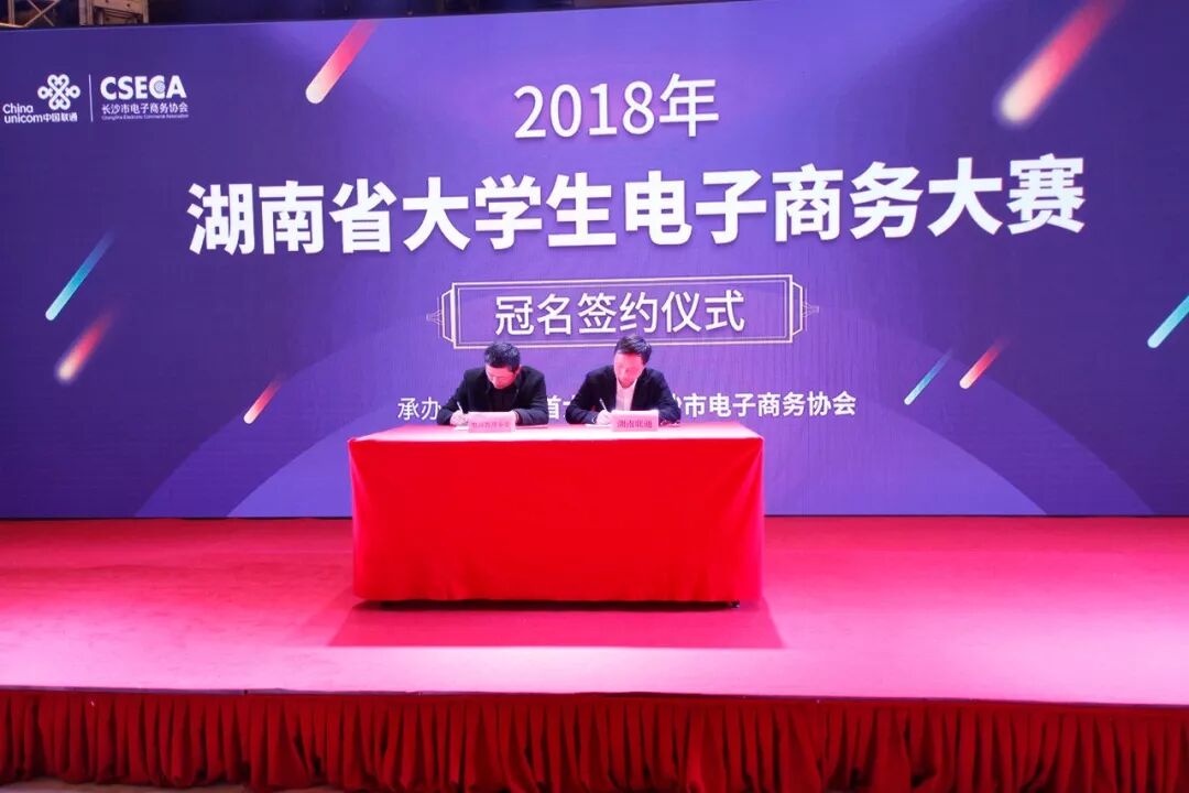 产业的发展需要人才的支撑,而人才的培养也有赖于产业的推动。湖南省大学生电子商务大赛是教育厅、商务厅共同主办的学科大赛、也是行业大赛,是产教融合与校企协同育人的典范。2018年湖南省大学生电子商务大赛冠名签约仪式在本次会议期间举行,湖南联通继2015年冠名之后,再度为大赛冠名。