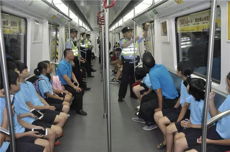 地铁分局民警为师生们介绍广佛地铁基本情况。“耶,第一次坐地铁!”