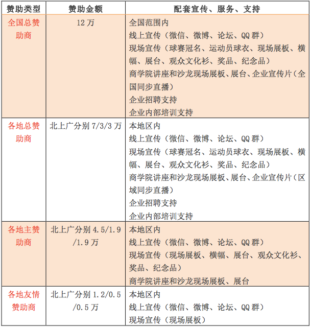 为促进和君商学院学生群体与社会企业的沟通,让高品质的企业和品牌与精英学子群体实现良好对接,为双方的成长和发展提供契机,此次足球赛事开启赞助合作窗口。合作预期如下: